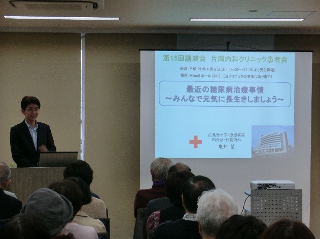 平成29年4月8日(土)、広島赤十字原爆病院で糖尿病診療を行っておられる亀井望先生にお越しいただき、最近の糖尿病治療事情についてお話しいただきました。