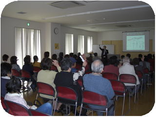 とても興味深く、わかりやすいお話に、みなさん、聞き入っておられました。 最後に質疑応答も活発に行われましたが、先生の口調が優しいこともあり、終始、和やかな雰囲気に包まれ、あっという間の時間でした。参加者数は50数名と多数のご参加を頂きました。