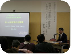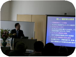 当初は、治療薬がテーマでしたが、この度の東北地方太平洋沖地震をうけ、急遽、「震災時に備えて」という大きなテーマでご講演を頂きました。